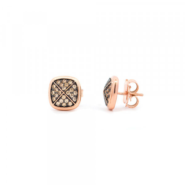 Pendientes Tachuela de Plata Rosa con Circonitas Champagne