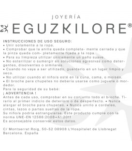 Chupetero redondo de Plata de 1ª Ley (925mm) y PVC blanco con forma Eguzkilore en el lateral derecho con grabación "Maria". Diámetro del chupetero: 41mm. Cierre de pinza. Medidas del Eguzkilore: Alto 29mm y Ancho 22mm. Largura de la cadena: 17cm.