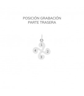 Colgante de Plata de 1ª Ley (925mm) en forma de Lauburu clásico. La pieza tiene un acabado rústico y artesanal por lo que no hay dos iguales. Se puede grabar una inicial o número en cada uno de los pétalos del Lauburu, indicar la posición en la que se quiere grabar siguiendo la guía. Primera grabación incluida en el precio. Diámetro del Lauburu: 17mm. Medidas de la reasa: Alto 6mm y Ancho 1mm. Posibilidad de comprar junto a cadena a juego, seleccionándola en el desplegable.