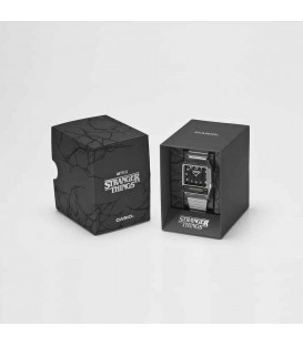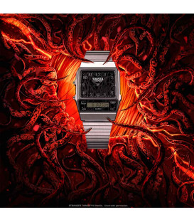 Reloj Casio unisex AQ-800EST-1AER. Este reloj es un modelo especial en colaboración con la serie de Netflix "Stranger Things", se inspira en los dos mundos de la historia - la realidad cotidiana y la inquietante "Upside Down"- entrelazando elementos clave de la serie en cada detalle.
