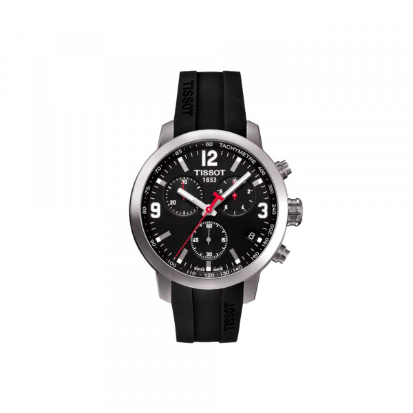 Tissot PRC 200 Chronograph es un reloj de cuarzo analógico con cronógrafo Suizo, caja de 42mm y cristal de zafiro irrayable. Este reloj es el sucesor del modelo PRS 200 el cual combina a la perfección lo clásico con lo deportivo. El reloj presenta tres sub-diales que muestran 1/10 de segundo, 30 minutos y 60 segundos y funciones adicional (ADD) y parcial (SPLIT). La esfera es negra con manecillas e índices luminiscentes Super-LumiNova ®, para una lectura más legible, y agujas con el detalle en color rojo. Entre sus funciones tiene taquímetro y fecha de visualización en posición de las 4h en punto. La corre es de caucho negra con hebilla estándar. Tiene una resistencia al agua de 200m (20bar.). Incluye caja original y garantía de 2 años cubierta por el fabricante.